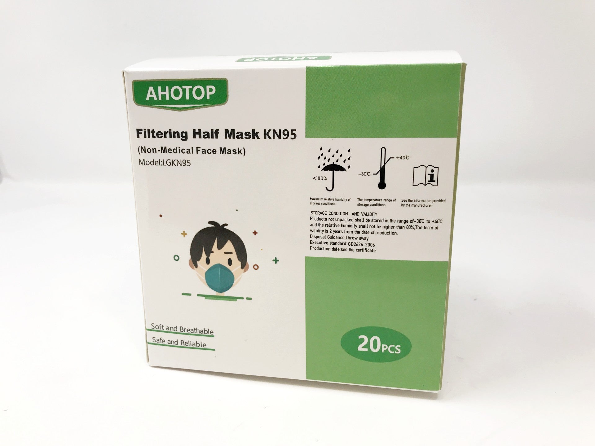 Hi, how you doing? We are testing every single mask on Amazon, including kids mask. I hit the button, there you go.Today we're looking at the Ahotop, sounds like a Egyptian God of some kind. Let's open up this box and see how it does, just make it so hard. Can't even see this box. See what, see what I did there. So, they are making the claims, they're saying this is a kid sized KN95. I don't believe there's actually a kid size or a kid KN95, but they're not being disingenuous there because they're saying it's just kid sized. So it's a small KN95 that said, they're saying it's a KN95 and it is not a KN95. It is a fake. And I will show you what I mean by that.