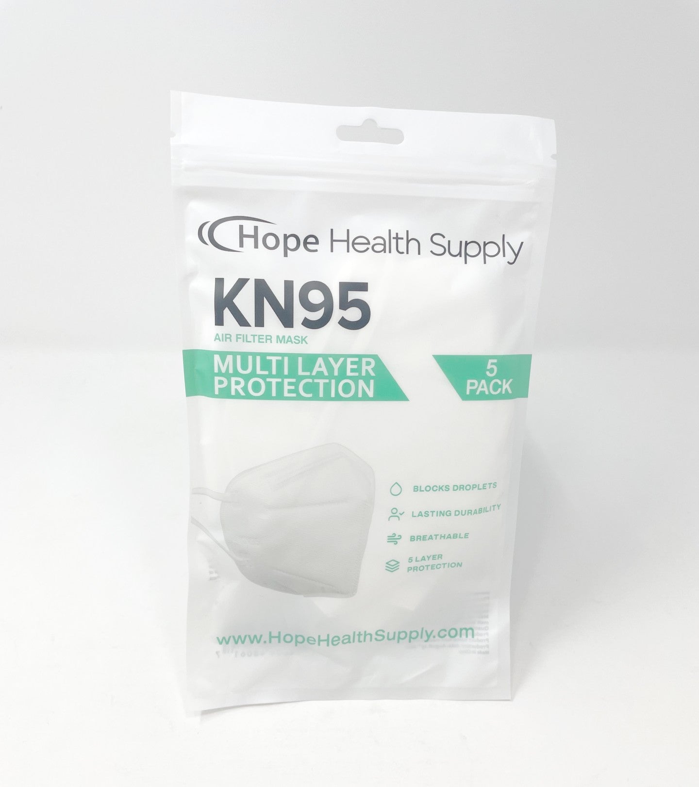 Ordered two 5 packs of KN95 masks in white. The first pack every mask I took out, the straps broke. I was asked to write a review for them which was of course, negative and it was never published and my account was deleted. DO NOT ORDER FROM HOPE HEALTH SUPPLY!!!!