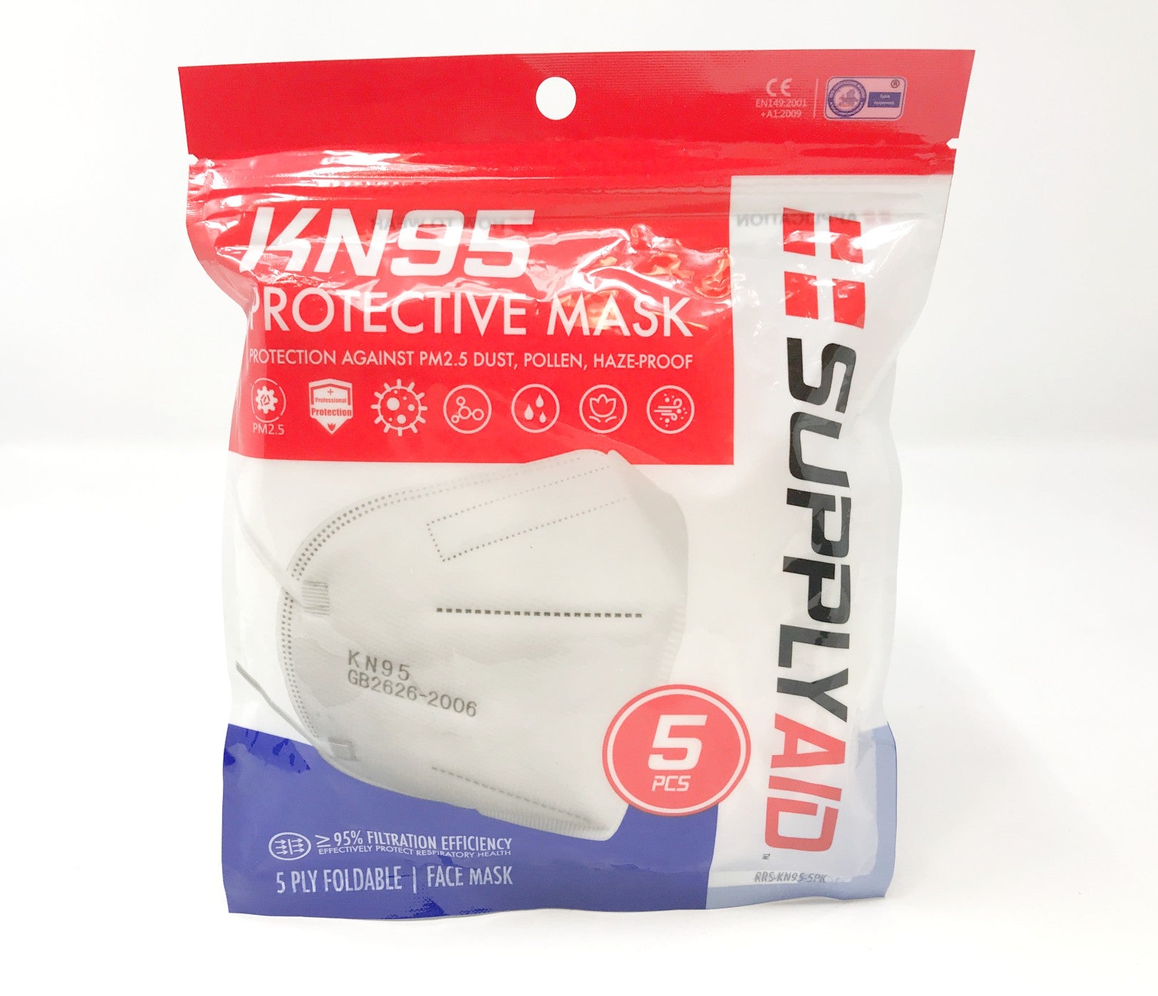 The SupplyAID RRS-KN95 Mask failed because it wildly missed the filtration requirement (95%). The KN95 standard also requires that the mask have the manufacturer’s name and the appropriate technical standard, typically either "GB 2626-2019" or GB-2626-2006,” written across the front of the mask. This is similar to how official N95 masks display NIOSH approval numbers. This mask did not have the required identification on its front.
