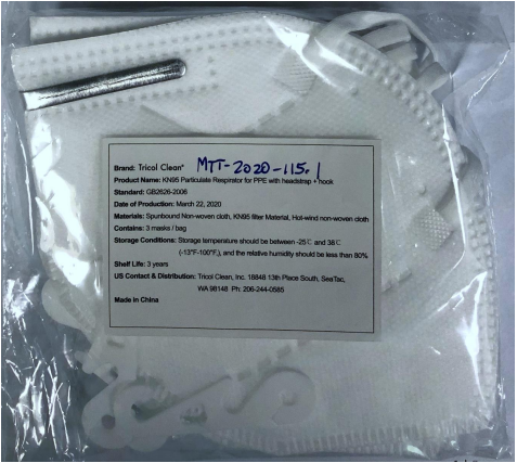 Tricol Clean KN95 Particulate Respirator for PPE with Headstrap + Hook