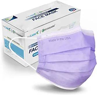 The ECOGuard disposable mask passed our particulate filtration efficiency machine test with a score of 96.23%This 3-ply purple surgical mask has ear loops instead of head straps or ties.