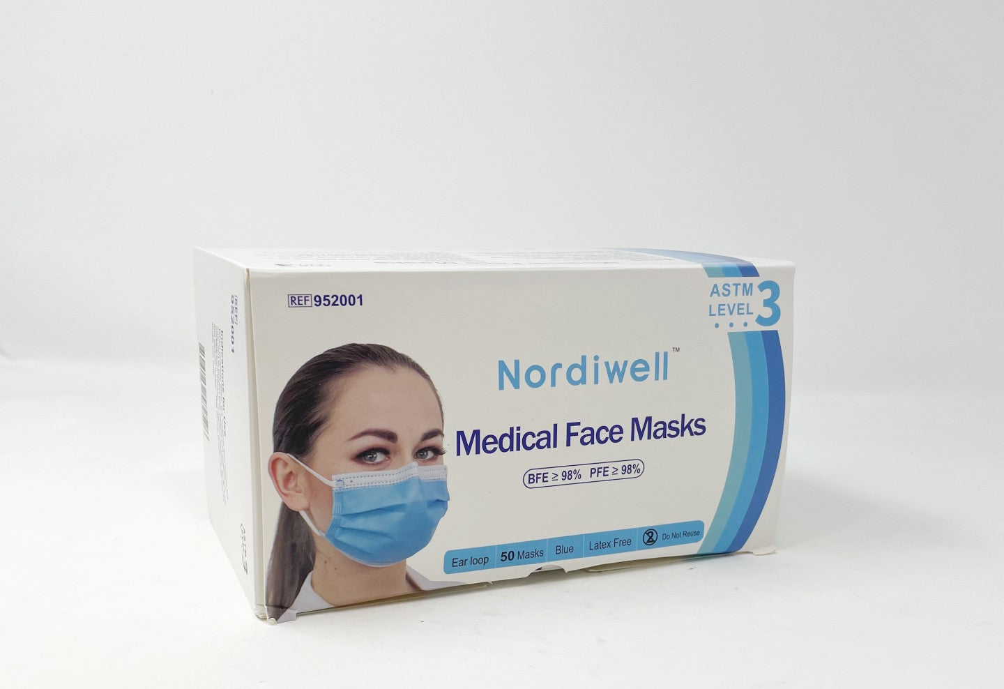 The Nordiwell mask passed our particulate filtration efficiency machine test with a score of 96.52%. This 3-ply blue surgical mask has ear loops instead of head straps or ties.