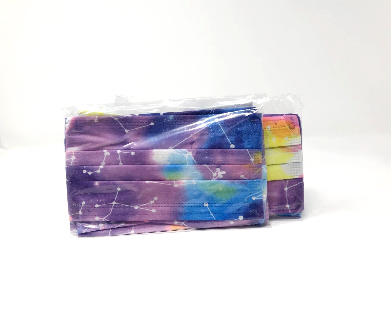They're not really making any claims on here that I can see. Look at all these fricking colors. Jewel tones, I don't know what that means. Crazy tie dye, assorted snake skin. I used to dance under that name. Let's look at the box. Not their best box. This looks like one of their early designs, but look at this, it's sealed on the outside. That's so cool. Let's rip that open. Green masks is a weird flex, and remember, we just bought every mask on Amazon, so that meant apparently buying 26 WeCare masks. So, not a soft touch I feel there. Oh my gosh, these are individually packed. That's so cool. Makes it really hard for me to test the ear loops, though. I'm going to open two at a time. Look at that. That is so nice. Oh my gosh, this is a great mask.