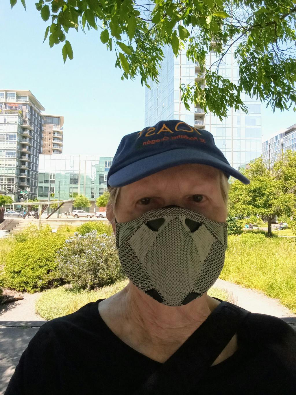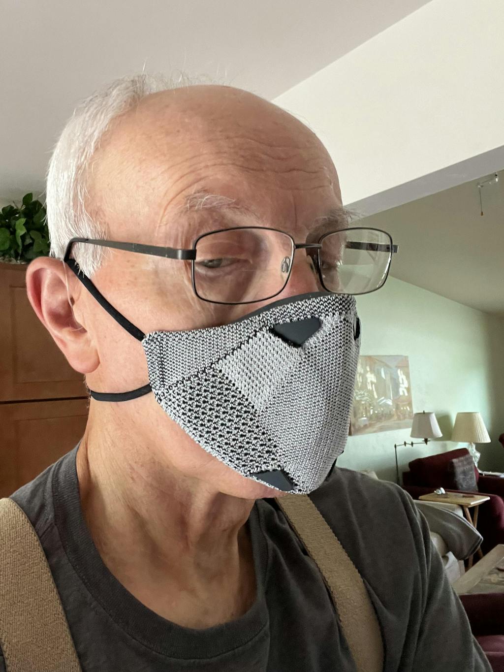 An interchangeable, adjustable, and breathable textile component which secures the facepiece to the wearer. The strap design eliminates ear rashes caused by standard masks. Machine-washable.